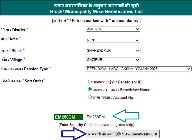 हरियाणा लाडो लक्ष्मी योजना लिस्ट (लाभार्थी की सूचि) देखने ने लिए आपको सामाजिक न्याय एवं सशक्तिकरण के पेंशन पोर्टल पर जाना होगा। इस पोर्टल पर आप अपना जिल्ला, क्षेत्र, गाँव/वार्ड/सेक्टर सेलेक्ट करके लाडो लक्ष्मी योजना लाभार्थी की लिस्ट देख सकते है और अपना नाम इसमें खोज सकते है।